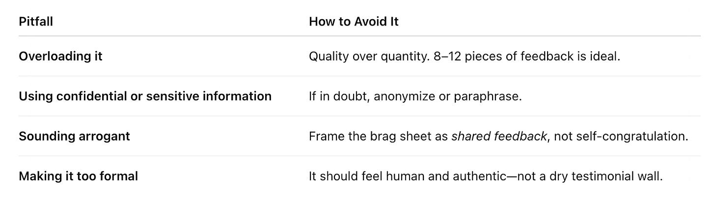 Even a great brag sheet can backfire if youâre not careful. Watch out for: